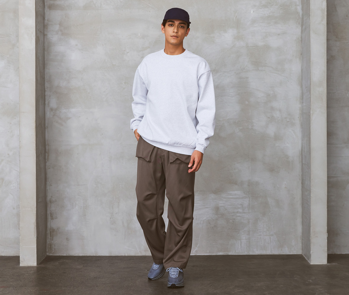 ゆったりとしたリラックス感のあるサイジングにこだわった一着。大きめにとられたアームホール、ボリューム感のある袖まわりがこなれたムードを演出します。「マグナムウェイト」の名にふさわしい15.0オンスの極厚生地は、保温性抜群の裏起毛仕様。寒さ際立つ真冬の心強い味方に。生地の表糸にはオープンエンド糸を使用したことで、シャリ感とラフな雰囲気も楽しめます。表面に見えるステッチを可能な限り排したミニマルなデザインなので、ストリートはもちろんのこと、さまざまなスタイリングにマッチ。シンプルで普遍的なアイテムだからこそ、シルエットから縫製仕様までこだわりが際立つ逸品です。