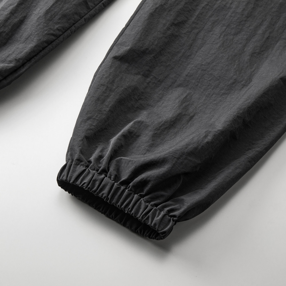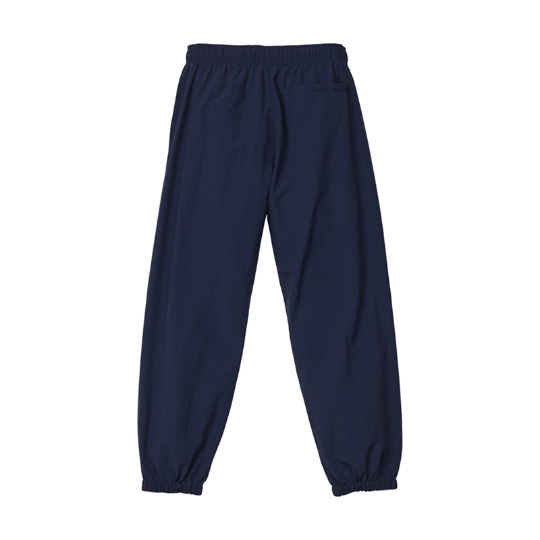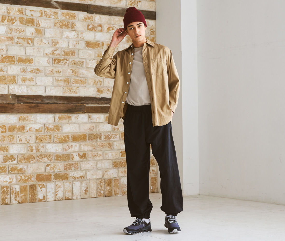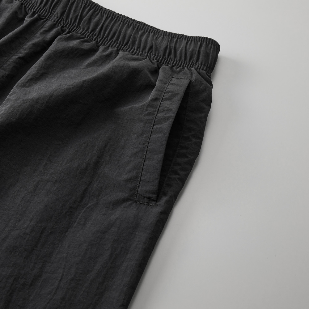 タフなナイロンをコットンのように加工して織り込んだ、やわらかな生地が魅力のトレーニングパンツ。ミリタリーのトレーニングパンツのルーズフィットなデザインを踏襲しつつ、横から見たときに膨らむようなバルーンシルエットとなるようにアジャストされたことで、流行りの大きめなトップスとの相性を最大まで引き出した魅力的なアイテムとなりました。プリントなどの加工がしやすいシンプルな縫製仕様に落とし込み、アパレルからスポーツのユニフォームまで、さまざまな用途に活用できるように企画。ブーム真っ只中のスニーカーやユーズドアイテムとの相性も抜群です。