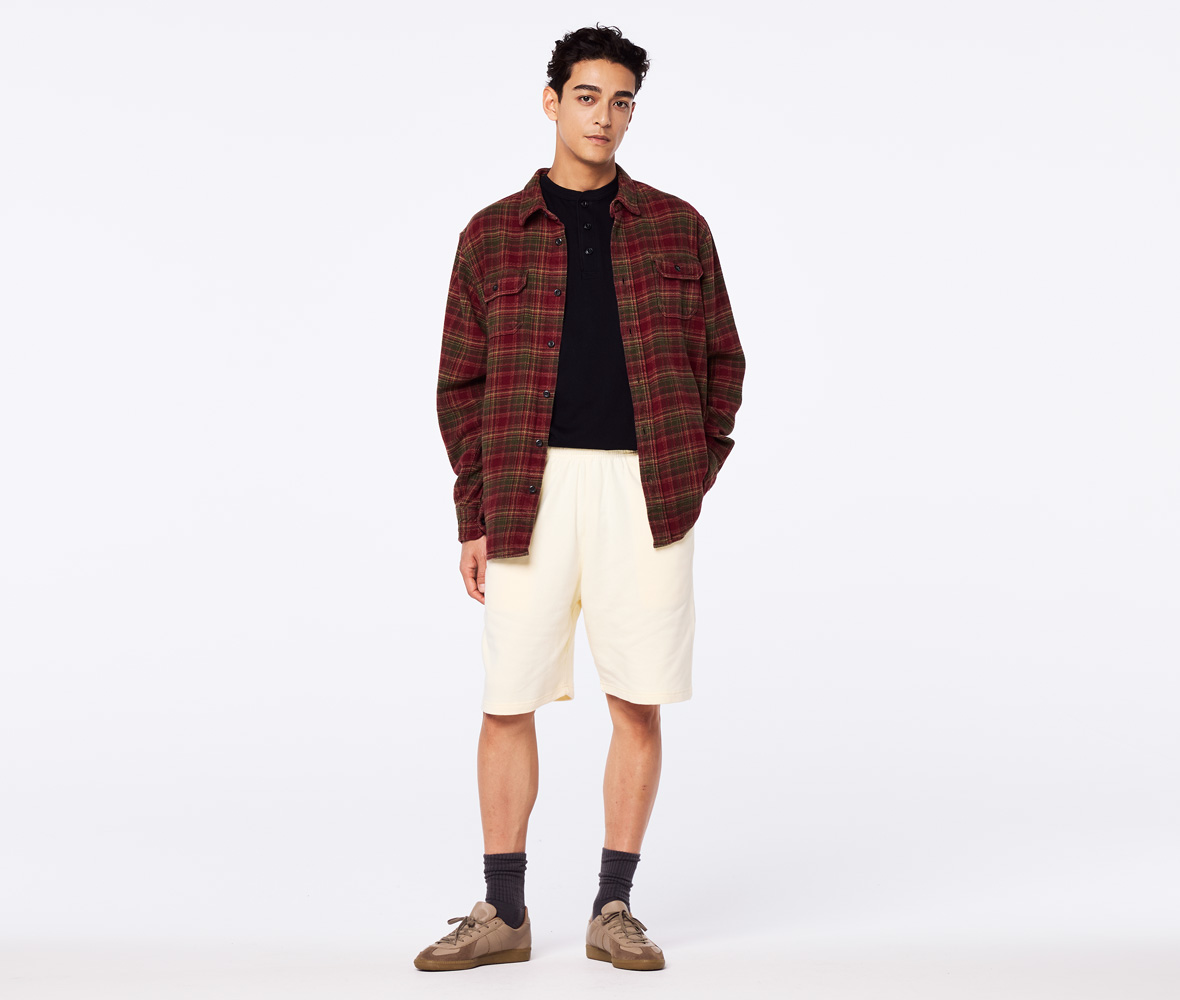 フレンチテリーで仕立てたスウェットショーツは、ほどよい厚みと優しい肌ざわりが特徴。「Style No.5198-01」のトップスとはセットアップスタイルで楽しめます。サイズ設計は身体のラインを拾わない程度の定番的なレギュラーフィット。シンプルで使い勝手抜群のショーツは、多目的に着られるデザインのため、幅広いシーンで大活躍すること間違いなし。街着としてはもちろん、部屋着やワンマイルウェアとしても重宝します。カラー展開は、ベーシックな色からアイキャッチな色付けもあり遊び心満載。ワードローブのひとつとして加えたい普遍的なアイテムです。