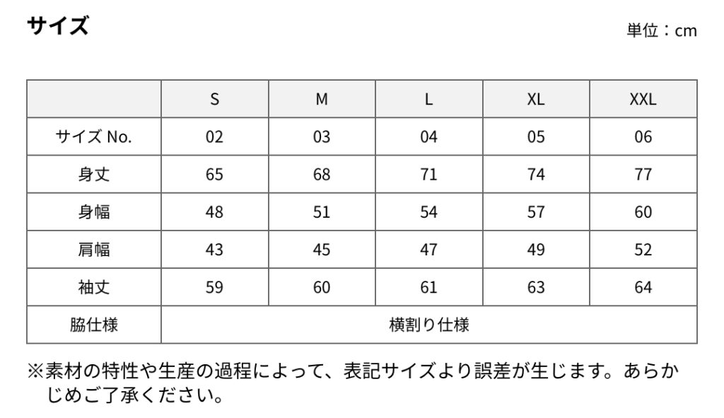 | Color | 0001-ホワイト, 0002-ブラック, 0064-オレンジ, 0069-レッド, 0072-バーガンディ, 0084-コバルトブルー, 0086-ネイビー, 0101-OD, 0173-ガンメタル, 0538-ターコイズブルー |
