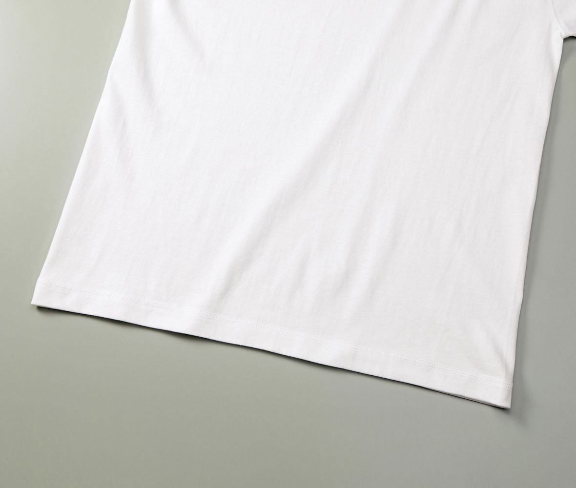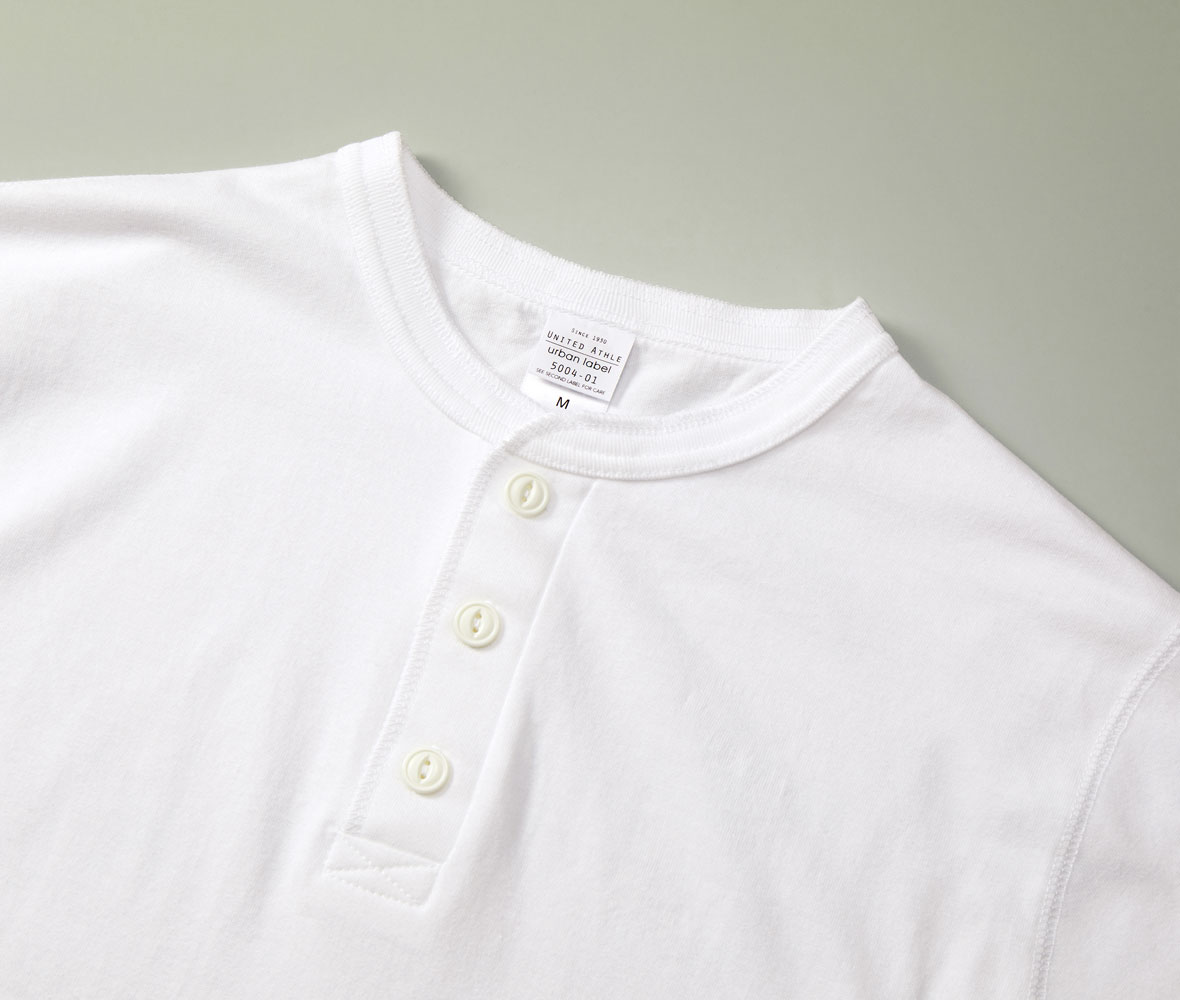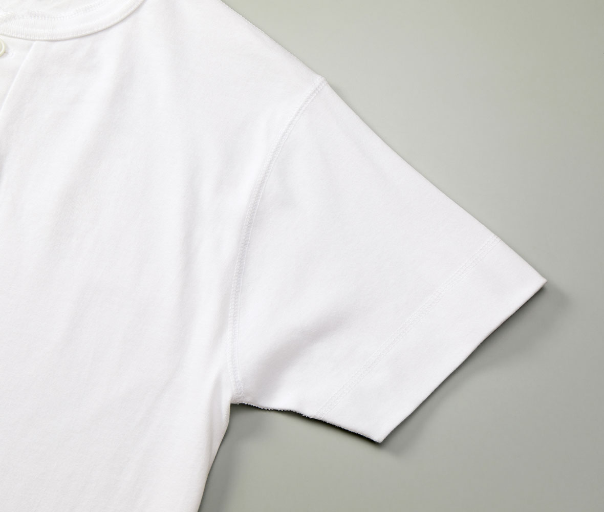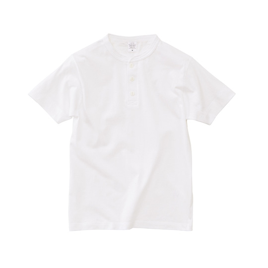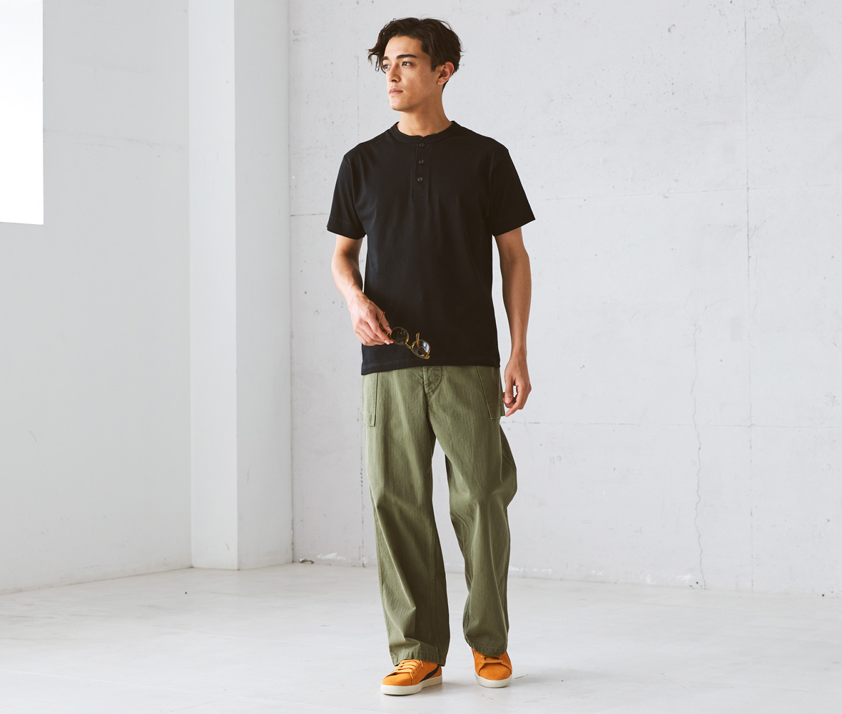 ちょうどいい生地厚で、ヘンリーネックをカジュアルに着こなせます。