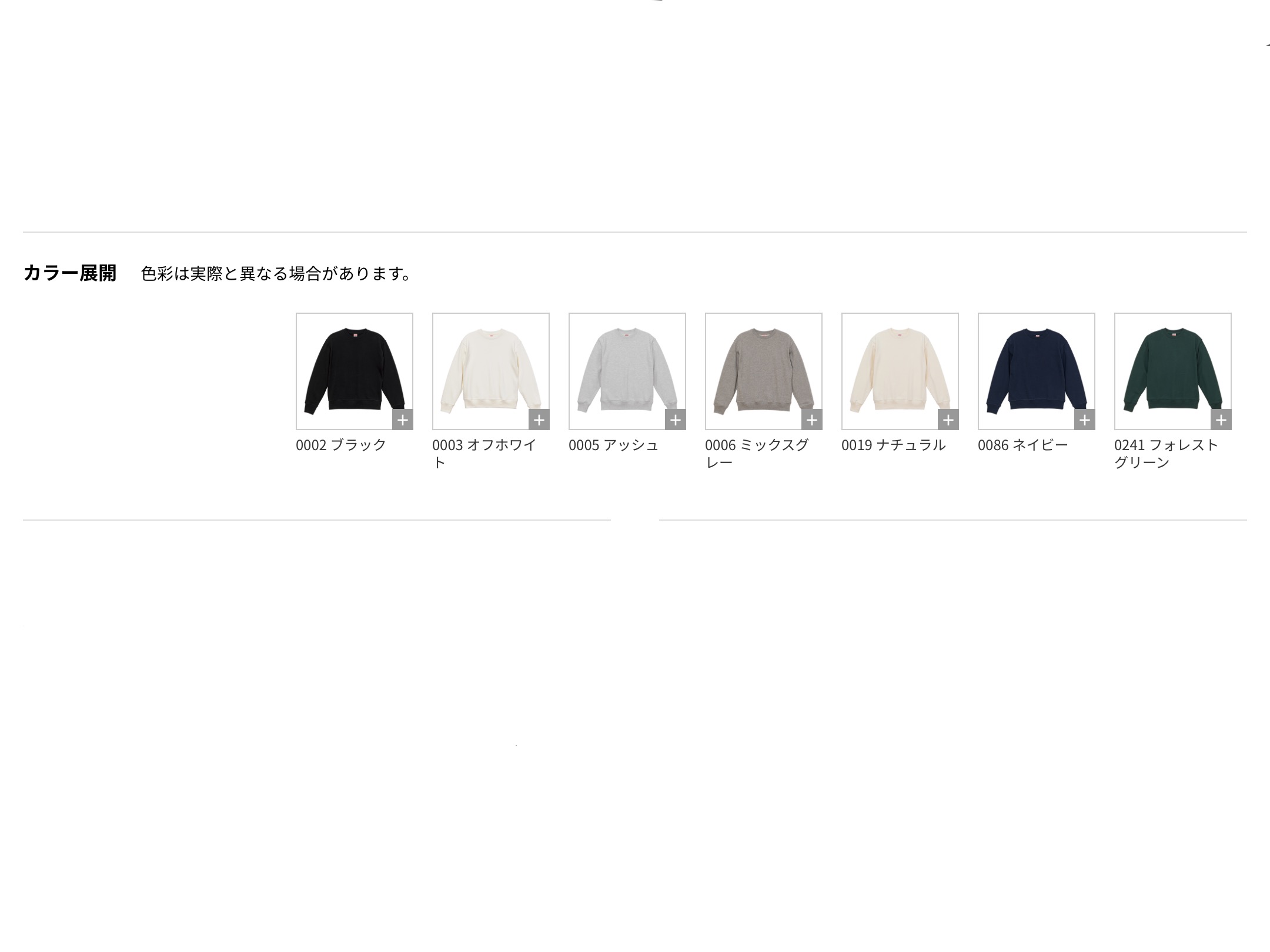| Color | 0002-ブラック, 0003-オフホワイト, 0005-アッシュ, 0006-ミックスグレー, 0019-ナチュラル, 0086-ネイビー, 0241-フォレストグリーン |
