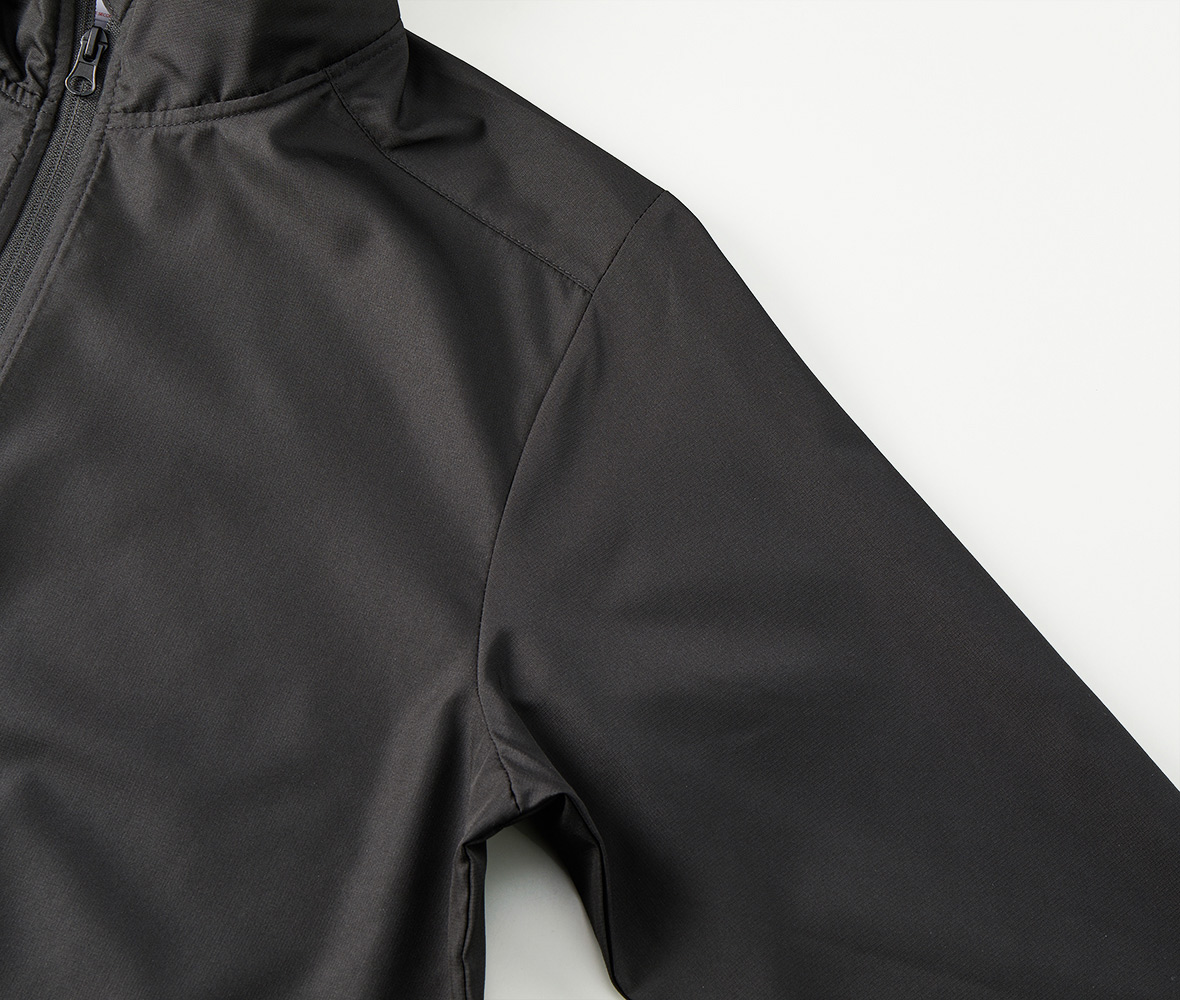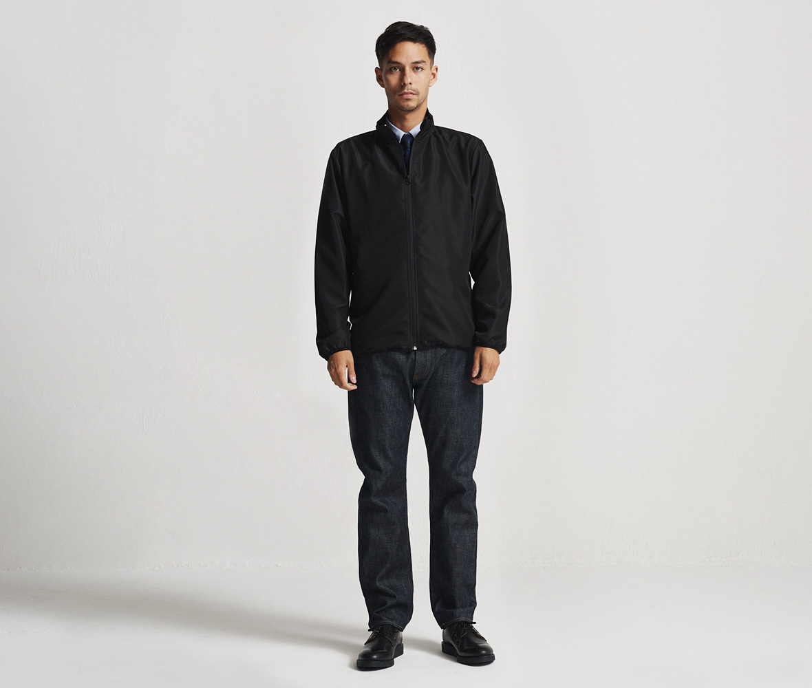 シャカシャカとこすれる音が少ないソフトな風合いで、静かなセミナーやイベントのスタッフジャケットとしても最適です。適度な通気性と撥水性があり、豊富なカラーバリエーションと高いコストパフォーマンスが魅力。