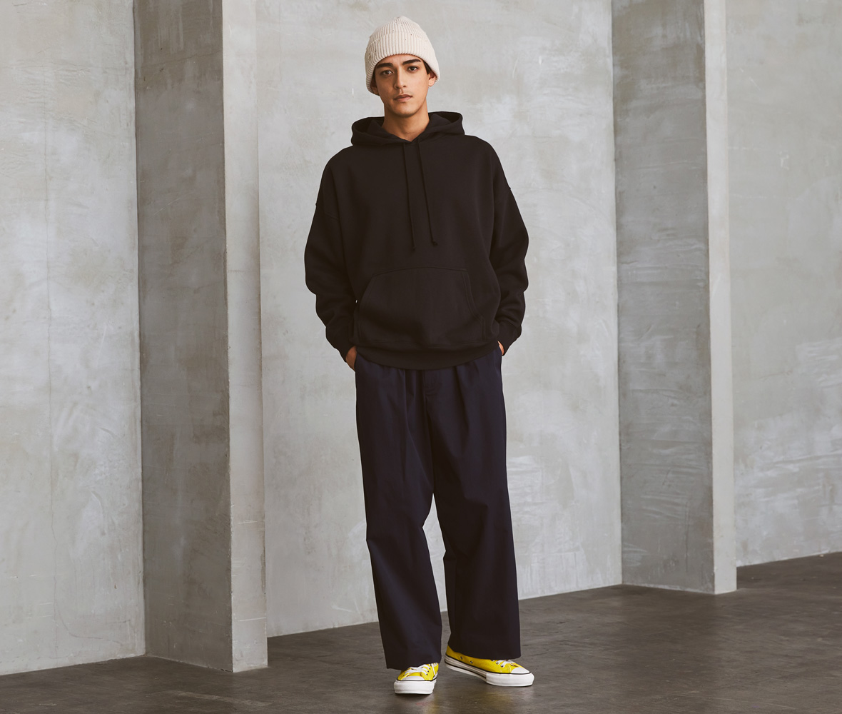広めにとった身幅と絶妙な肩落ち具合のゆったりシルエット、